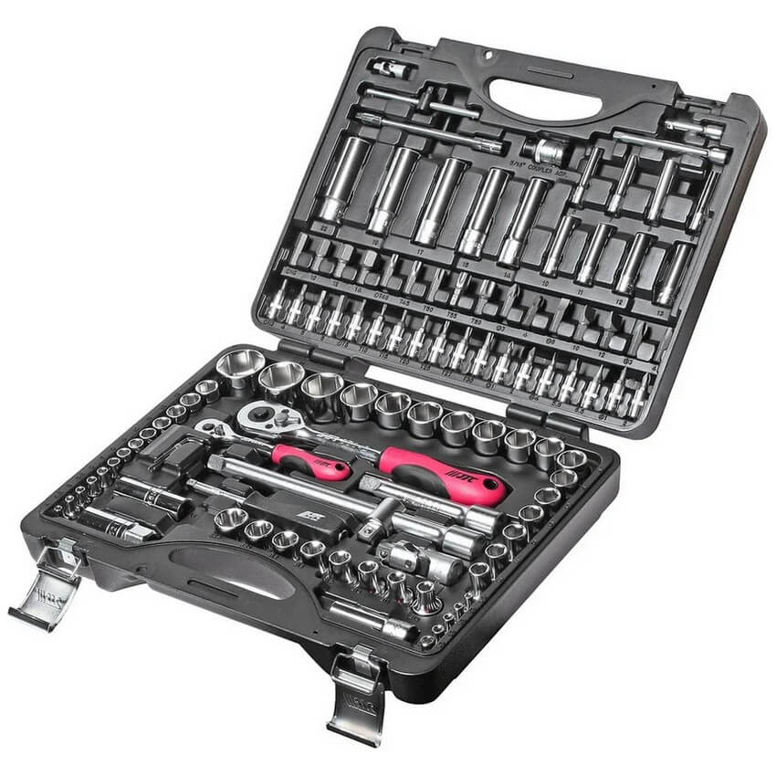 Профессиональный набор JTC JTC-H110B-B72 включает 110 высококачественных 6-гранных торцевых головок и вставок с присоединительными размерами 1/4" и 1/2". Комплект предназначен для ремонта и обслуживания автомобилей, а также различной техники. Каждый элемент изготовлен из прочного металла, а рукоятки трещоточных ключей выполнены из нескользящего двухкомпонентного материала для комфортной работы.
