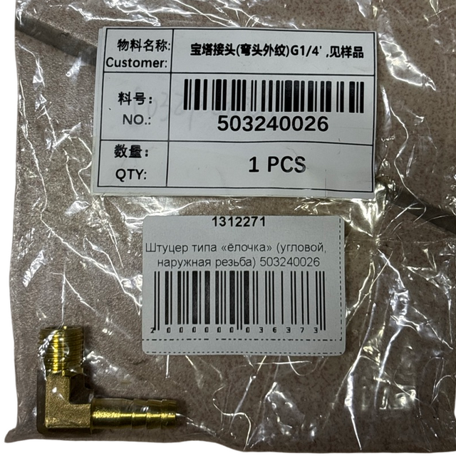 Штуцер типа «ёлочка» (угловой, наружная резьба) 503240026